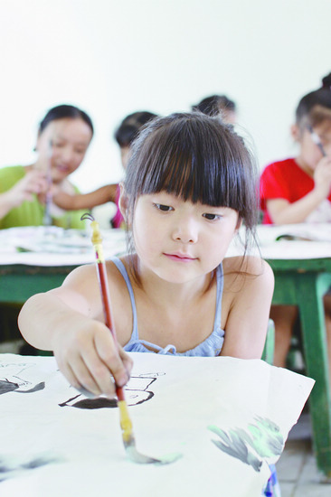 賈赟昕今年8歲,在成都書畫家于都江堰市胥家鎮(zhèn)大林社區(qū)開辦的少兒書畫培訓班中,