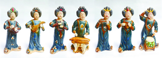 唐三彩是藝術(shù)百花園中的一枝奇葩,它以黃、綠、白三色為主,在燒制過程中釉彩相互浸潤和渲染,并發(fā)生自然流變?nèi)転橐惑w,其璀璨奪目的色彩、富麗堂皇的氣度、典雅厚重的內(nèi)涵,顯現(xiàn)了1000多年前大唐時(shí)代高度發(fā)展的物質(zhì)和精神文明。唐三彩的燒制成功,是世界科技史上一個(gè)偉大創(chuàng)舉,色彩斑斕的釉彩為陶瓷藝術(shù)開辟了新的美學(xué)境界。唐三彩中女俑占有較重比例,有伎樂俑、女官俑、騎馬女俑、男裝女俑等,制作格外精美,造型多表現(xiàn)為體態(tài)婀娜、豐面小口、表情嫻淑、儀態(tài)端莊,不同神情、姿態(tài)、服飾的女俑反映出風(fēng)格各異的女性形象。如何繼承與發(fā)展唐三彩藝術(shù),一直是當(dāng)代工藝美術(shù)名家探索的課題。其中,由北京圣櫟林國際文化交流中心研發(fā)和推出的系列精仿唐三彩女俑像,采用傳統(tǒng)工藝推陳出新,為古老的技藝煥發(fā)當(dāng)代風(fēng)采提供了樣本。