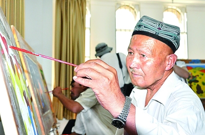 目前,熱合曼的一幅畫售價(jià)幾百元到上千元不等,一年能為他帶來(lái)3萬(wàn)元的收入。當(dāng)被問到更喜歡種棉花還是畫畫時(shí),老人家微微一笑:“更喜歡畫畫。”