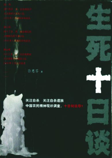 《生死十日談》以農村自殺現象作為自己的采寫對象,對十幾樁農民自殺個案逐一進行深入的剖析,條分縷析,理清來龍去脈。由一個個體的死亡輻射到其生活的環境、社會關系,輻射到整個農村社會、鄉村、家族、家庭,從中挖掘當事者自殺的緣由,思考自殺現象的社會、家庭、心理、物質和精神的各個層面的原因。很多思考都一針見血,切中肯綮。譬如,作者寫到“關系的斷裂”、“關系的死亡”是一個人選擇死亡最終的原因,如果生命有所附麗,生活有所關聯牽絆或維系,那么,一個人的心不死,精神不死,他是不會去自殺的。這樣的文本已經超越了文學的范疇,成為了一個社會學、精神心理學、哲學的文本。