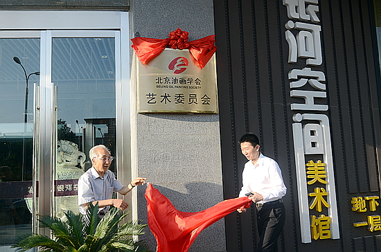 中國美協原主席、北京油畫學會主席靳尚誼與銀河空間集團執行董事潘勇為北京油畫藝委會揭牌