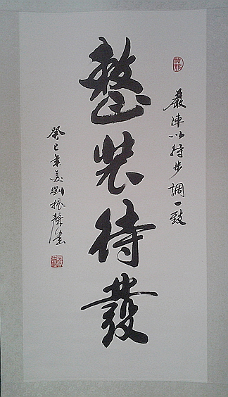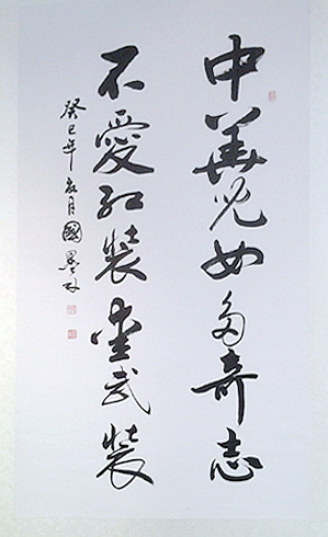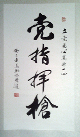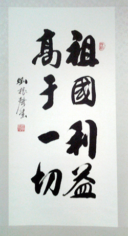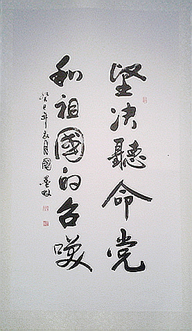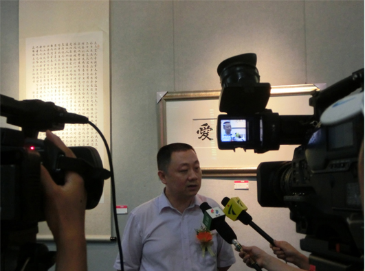 愛國書法展總策劃、八路軍老戰士文工團團長焦歌在開募式上發表了講話,他說:國共合作期間,于1937年8月,在國民黨的一次高級國防會議上宣布八路軍正式成立。抗日戰爭中在中國共產黨領導下,八路軍、新四軍和各族人民英勇抗擊倭寇,給侵略者以沉重打擊,為抗戰的勝利做出了重大貢獻。八路軍的平型關大捷和百團大戰對抗日戰爭的全面勝利起到了至關重要的作用。今天,世界政治格局變幻莫測,日本右翼勢力又在蠢蠢欲動。愛國教育,刻不容緩。八路軍老戰士文工團策劃主辦 “當代名家愛國書法展”來紀念中國人民抗日戰爭暨世界反法西斯戰爭勝利68周年,就是為了讓大家銘記這段歷史。每一名中華兒女都要居安思危,時刻準備著,隨時聽從祖國的召喚,聽命黨的指揮!為實現偉大的中國夢多做貢獻!