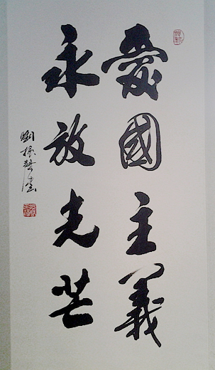 為大力弘揚愛國主義,8月15日上午,八路軍老戰士文工團在廣東省佛山市南海藝谷美術館主辦舉行了“紀念中國人民抗日戰爭暨世界反法西斯戰爭勝利68周年當代名家愛國書法展”。八路軍老戰士文工團團長焦歌和佛山市南海區有關方面領導同志參加了開幕儀式。