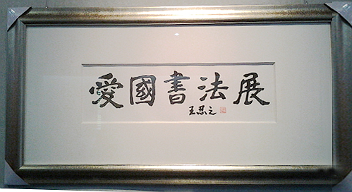 愛國書法展作品由張益三(楷書專家)、國墨林(將軍書法家)、劉振聲(行草專家)三位我國知名書法家的作品組成。已故楷書大家張益三的作品令人稱奇,他在絹上書寫的蠅頭小楷(孫子兵法)長約10米,筆筆匠心獨運,他書寫的(前后出師表),字字精雕細刻。使人留連忘返,難以忘懷。將軍書法家國墨林書寫的條幅“堅決聽命黨和祖國的召喚”、“空談誤國、實干興邦”等作品,令人觀后激情滿懷,蕩氣回腸。行草大家劉振聲的書法作品條幅(但使龍城飛將在 不教胡馬度陰山)、(揚眉劍出鞘)、(好男兒志在四方)、(軍無戲言)、(愛我中華 保衛邊疆)、(把一切獻給偉大祖國)、(氣沖霄漢)等作品蒼勁有力,讓觀者熱血沸騰。