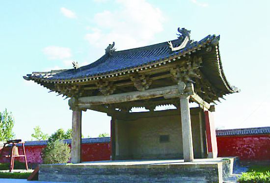 尤為值得關(guān)注的是,在這次展覽的策劃上使用了縱、橫兩軸來搭建展示平面和展覽的主線。縱軸即史脈,是古戲臺文化底蘊的闡述。從古戲臺發(fā)展的歷史脈絡(luò)來看,其概念隨著原始歌舞一同起源于原始社會的祭祀活動,此后,它的演變也始終與戲曲的發(fā)展基本呈現(xiàn)出同步化的特征。金元時期是中國戲曲史上非常重要的時代,雜劇成熟并逐漸興盛起來,最終取代百戲歌舞成為演出的主要形式和內(nèi)容。與之相應(yīng),古戲臺的發(fā)展也歷經(jīng)露臺、舞亭等步入成熟期。如山西臨汾魏村牛王廟戲臺,建于元至元二十年(1283年),戲臺坐北朝南,建在高1米多的磚砌臺基上,面寬7.45米,進深7.55米,平面近似方形,單檐歇山頂。臺身四角立柱,梁架結(jié)構(gòu)獨特;藻井精巧,具有攏音功能;周身三面開敞,僅后檐與兩山后部砌墻,山墻約為山面總長的三分之一,顯示出元代戲臺已有前后場之分,并形成了三面觀形制。這是由雜劇的演出特點決定的,此種改革奠定了中國戲臺的基本樣式。
