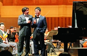 8月25日晚,“打開藝術之門——暑期藝術節”上青年指揮家夏小湯帶領中國愛樂樂團和中國建設銀行愛樂合唱團在中山音樂堂上演“布蘭詩歌——世界經典名曲·大型交響合唱音樂會“。今年特設“圓夢空間”環節,一位幸運的12歲琴童葉方舟獲選登臺,與中國愛樂共同演奏莫扎特《第十九鋼琴協奏曲》。