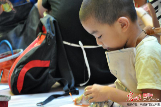 2013年8月26日,“2013 I CAN PAY”藝術(shù)節(jié)開(kāi)幕式上,自閉癥兒童正在完成繪畫(huà)作品。