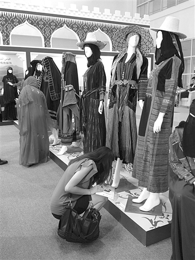 聚集參觀者最多的還是書法展區(qū),在這里只要拿著宣紙排著隊(duì),就能等到懂得阿拉伯書法的阿訇題贈(zèng)的書法作品,可以把每個(gè)人的中國名字轉(zhuǎn)成阿語名字寫在紙上。也有不少女性對(duì)阿拉伯服飾展區(qū)的阿拉伯大袍產(chǎn)生興趣,伸手摸一摸,或是蹲下仔細(xì)研究一番的大有人在。