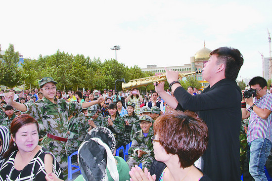 “好看!”“太棒了!”演員們賣力的演出也贏得了觀眾毫不吝惜的溢美和夸獎?!按舜窝莩鍪菍ξ覀儤O大的鼓舞,比給我們100萬元現(xiàn)金都有意義,比上100場政治教育課都有效”,某駐和武警部隊政委王克紅對演出給予了高度評價,他說這種精神財富更為寶貴;小戰(zhàn)士趙飛不停地鼓掌,他說上一次看演出還是幾年前,這次聽說首都文藝家要來,他高興得好幾天沒睡好覺,“估計晚上又要失眠了,因為節(jié)目太精彩,興奮極了”;14歲的維吾爾族男孩依爾安江看著節(jié)目樂壞了,他坐在椅子上跟著動感的節(jié)奏不停地晃動著,時而大笑,時而伴著旋律哼唱,“口技小鳥的叫聲學(xué)得太像了,變臉太神奇了,離我很近,一眨眼就變了副臉孔……”;為支援和田建設(shè)來此兩年多的曹磊臉上掛滿笑容,“看到了來自家鄉(xiāng)的演出感覺親切極了”,他說熟悉而又溫暖的鄉(xiāng)音更加振奮了他們做好工作的信心;紅其拉甫邊防口岸哨所的戰(zhàn)士小曹很激動,因為他不僅看到了精彩的演出,還從魔術(shù)師李學(xué)義那里學(xué)會了一招魔術(shù),并且得到了一套魔術(shù)道具,小曹憨厚地笑著說:“以后可以在休息時給戰(zhàn)友們變魔術(shù)了,沒想到我也成魔術(shù)師了”……