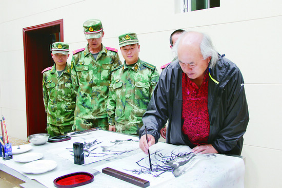 畫家吳進(jìn)良在紅其拉甫哨所內(nèi)為戰(zhàn)士們作畫