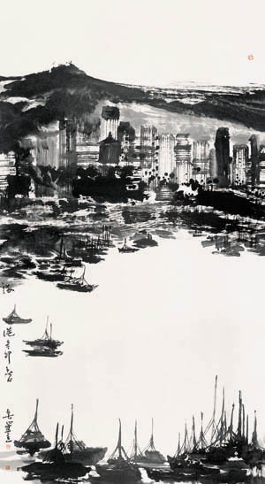 吳建軍的山水畫將一種曠達(dá)遼闊的胸襟寄托其中,在數(shù)尺范圍之內(nèi)展現(xiàn)山川河流同時(shí)也是人格的大氣磅礴。他善于利用豪放揮灑的氣勢和恣意書寫,來營造內(nèi)斂深沉的意境。他追求畫面整體效果的自然生動(dòng),特別是遠(yuǎn)望山川奇峰的巍然和氣魄,打破傳統(tǒng)山水畫留白的傳統(tǒng),以墨色將畫面幾乎占滿,氣勢壓頂之下,畫面留少許空白,既有視覺的喘息,又處處氣韻流動(dòng),觀之毫無壅滯之感。濃淡相宜的墨色配上干濕結(jié)合的筆法,一種朦朧空靈、煙云縹緲的視覺感受撲面而來,墨色的變化又給人留下極大的想象空間和琢磨不盡的意味。
