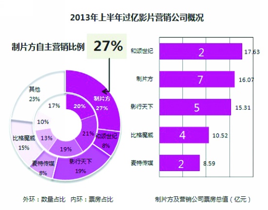 2013年上半年過億影片營(yíng)銷公司概況 圖片來源:藝恩咨詢