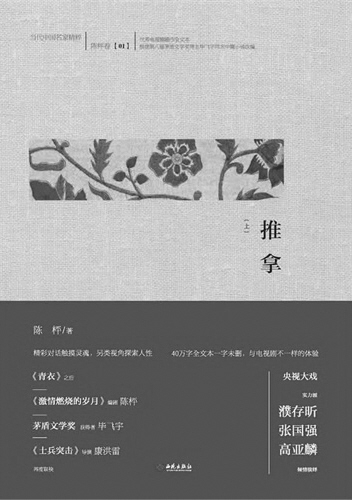 陳枰即是電視劇《推拿》的編劇。今年7月,西苑出版社出版了她的電視劇劇本《推拿》,全書分上下兩冊,四十余萬字,其電子版圖書也在各個電子圖書平臺陸續上線。