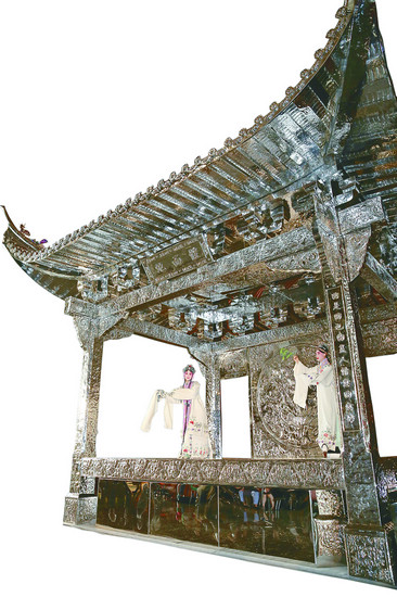 古戲臺(tái)的建筑,與我國(guó)傳統(tǒng)建筑的發(fā)展、演變密不可分;它作為戲曲表演的載體,又與百姓的生活習(xí)俗、文化傳統(tǒng)有著千絲萬(wàn)縷的聯(lián)系。同在國(guó)家大劇院中,與陳志光的不銹鋼《古戲臺(tái)》遙遙相望的,正是題為“小中見大——話戲臺(tái)”的國(guó)家大劇院藏戲臺(tái)模型展,那里展示的模型都是嚴(yán)格按照古戲臺(tái)的規(guī)制和外觀進(jìn)行制作的。“在時(shí)間上,兩者是一古一今;在空間上,它們的材質(zhì)與建筑語(yǔ)言又形成了有趣的對(duì)話。古典與現(xiàn)代,這兩種概念的和諧統(tǒng)一,同國(guó)家大劇院本身相當(dāng)契合。”國(guó)家大劇院副院長(zhǎng)楊玲如是說(shuō),“無(wú)論是前衛(wèi)、新穎的建筑造型,還是接軌西方的劇院文化,這里都給人很現(xiàn)代的感覺。同時(shí),作為國(guó)家表演藝術(shù)中心,國(guó)家大劇院又一直致力于讓觀眾領(lǐng)略到我國(guó)傳統(tǒng)文化、藝術(shù)經(jīng)久不衰的獨(dú)特魅力。”
