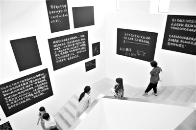 對此,中央美院美術館學術部副主任王春辰告訴記者,博伊斯喜歡寫黑板,通過這一方式便讓觀眾有了親近感,感受博伊斯作為一個行為藝術家的精神。事實上,博伊斯通過寫黑板的方式也再度傳達了他的藝術理念。“黑板形式很日常,我們從小到大都會面對,但就是這種方式讓你獲得思想、教育。”