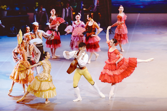 9月11日晚,以熱烈荒誕的喜劇風格、恢弘多彩的西班牙風情而著稱于世的芭蕾名作《堂·吉訶德》踏著歡快的舞步來到觀眾的面前。由中芭復排的紐里耶夫版大型三幕古典芭蕾舞劇《堂·吉訶德》在北京天橋劇場驚艷亮相。首演男女主角吉特麗和巴西里奧分別由朱妍和馬曉東扮演,在9月12日至15日的4場演出中,張劍、盛世東、曹舒慈、余波等也將傾情演出男女主角。據悉,此次演出也是中芭參與文化部主辦的“2013年國家藝術院團演出季”的重頭戲。(文\張 悅 圖\司廷宏)