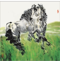 其實,編輯這個版面,十分糾結——劉勃舒、何韻蘭兩位先生,并不是典型的夫妻共同創作型畫家——曾是徐悲鴻關門弟子、如今作為中國美協顧問的劉勃舒,以“勃舒馬”揚名畫壇,早年作品嚴謹、工致,并以能夠充分抒發性情的草書入畫,在繪畫語言上有了拓展和發揮。他以馬寫心,以馬言志,筆墨淋漓酣暢,生動灑脫,體現了深厚的藝術造詣和瀟灑的藝術個性。除了畫馬以外,劉勃舒先生其他題材的中國畫作品以及書法創作,皆筆墨自由、暢快,顯示了他不拘泥于形似的閑適、自在的藝術狀態。