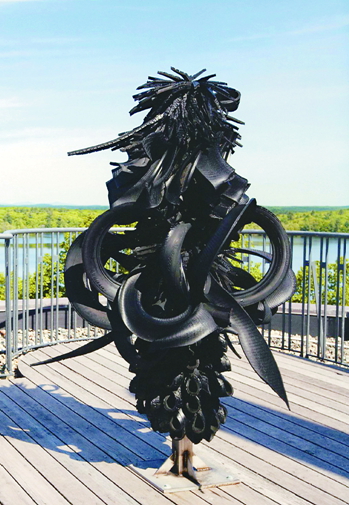 在今天的創(chuàng)作中,有雕塑家卡卡婭·布爾克用黑色輪胎制作的《周而復(fù)始》和雷·史密斯用深色木材制作的《瑪麗安娜》等雕塑作品,也有喬伊斯·潘塞多用類似涂鴉的方式創(chuàng)作的《金色蝙蝠俠》和羅伯特·隆戈帶來的《鯊魚》等具象繪畫,還有拉希德·約翰遜在純黑色塊中尋找變化描繪的“荷蘭人”的抽象繪畫。這種視覺上的大開大闔以及對(duì)戲劇化題材的青睞,使作品極具心理學(xué)意味,使得觀眾在已有的視覺系統(tǒng)里對(duì)不斷變化和發(fā)展的西方藝術(shù)有了進(jìn)一步的視覺更新和認(rèn)知更新。