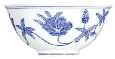 10月8日 明成化青花纏枝秋葵紋宮盌拍出1.41億港元。