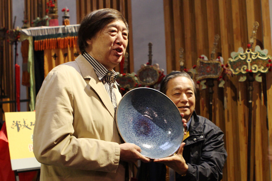 韓美林向馮驥才贈送紀念品 張志勇 攝