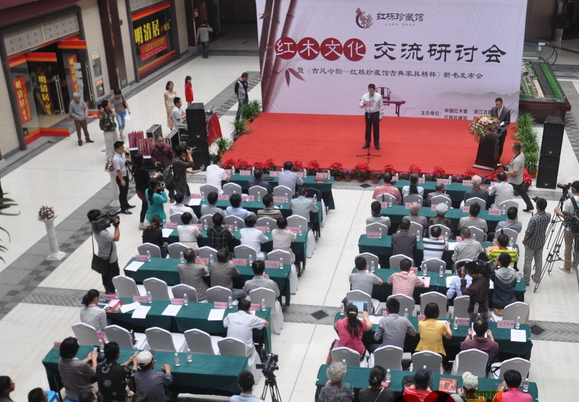 9月28日,位于浙江東陽橫店的紅棟珍藏館開館儀式在盛大開幕,同時舉行《古風今韻——紅棟珍藏館古典家具精粹》新書發布會、紅木文化交流研討會和“中國紅木委紅木家具文化研究會”成立授牌儀式。故宮博物院研究員胡德生、楊臣彬,《紅木》標準起草第一人楊家駒、中國明式家具研究所所長濮安國等專家領導出席了開幕典禮。