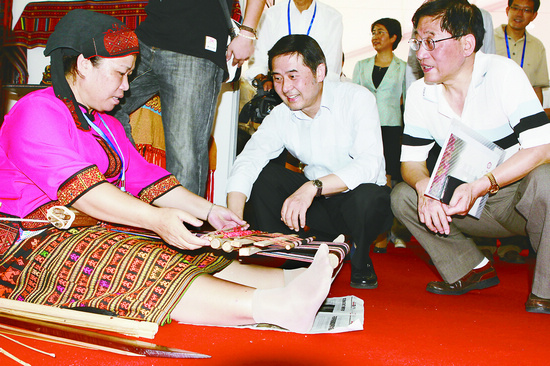 海南傳承人黃麗瓊現(xiàn)場(chǎng)展示黎族織綿工藝 張志勇 攝