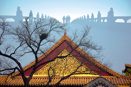楊建川拍攝《京城記憶》,以北京皇家建筑為主題,俱是已被聯(lián)合國(guó)公認(rèn)的世界文化遺產(chǎn),是人類共同享有的文明與文化財(cái)富。以影像作為記憶的保存介質(zhì),解釋并證明了文明和文化存在的事實(shí)與理由,非懷古之情,非興亡之嘆,日月留痕,磨洗人心。從“建極綏猷”的紫禁城到“敬天法祖”的天壇,從“頤養(yǎng)太和”的頤和園到“邊塞雄關(guān)”的長(zhǎng)城,敷影疊像,衍生出意義與象征,詩(shī)意哲思,江山社稷。