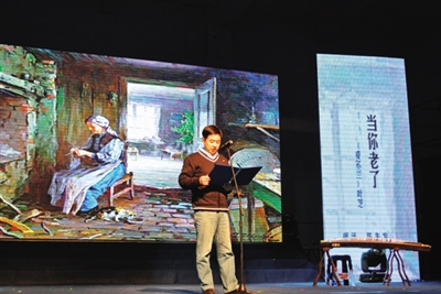 獲獎詩人陳先發朗誦袁可嘉譯詩葉芝《當你老了》。 沙白 攝