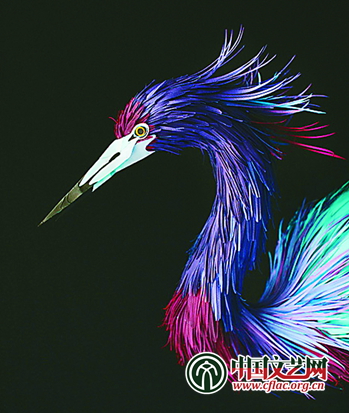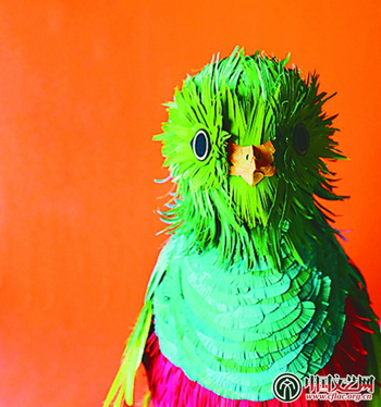 哥倫比亞藝術家Diana Beltran Herrera用紙張創(chuàng)造出了這些錯綜復雜的熱帶鳥模型。Diana Beltran Herrera這些手工紙鳥先用圖層面板行程基礎結構,然后用膠水把他們卷曲的、張開的羽毛粘著在一起。“首先我用紙張作出整體結構,用幾組羽毛作身體、尾巴、羽毛和頭部”,Herrera說,“然后我開始把這些一片一片的紙張糊在一起,最后的細節(jié)通常是嘴巴和眼睛。完成的時候給赤裸的腿粘上涂好色彩的羽毛,讓他們看上去像真的一樣。腿部我通常用電線和植物的莖部用絲帶捆扎,根據(jù)不同的鳥我會設計不同的顏色和樣式。每一步都是手工的”。Herrera根據(jù)她自己的記憶、照片作為設計和顏色參考。“這些圖片一些是我自己拍的,另一些來自鳥類愛好者、雜志、書籍和網(wǎng)絡。”到目前為止,這些紙鳥包括色彩豐富的異國鳥,像火烈鳥、鶴、藍蒼鷺、綠咬鵑,更多的是普通風格的啄木鳥和松鳥之類的。每個模型根據(jù)大小和復雜程度不同大概需要5天到兩周的時間制作。