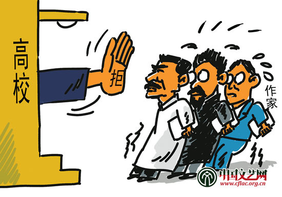 五四時期,魯迅、周作人、胡適、聞一多、林語堂、朱自清、徐志摩……一大批知名作家都曾任職于高校,引領一代風潮;對比當下,僅有為數不多的高校中有創作型教師。目前高校的博士培養制度及教師職稱考評制度并不利于創作與研究的互動。博士拿學位、教師評職稱,都不能靠創作。這種情況,必然把研究生、教師的主要精力引導到理論研討、論文寫作方面。即使很有創作天賦的老師和研究生,也難有機會在大學里施展創作才能,從而形成了搞創作的人在大學處境艱難的情況。