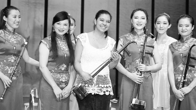 “中國文化月”從10月至11月在巴西的巴西利亞、圣保羅、里約熱內盧、薩爾瓦多等10余座城市舉行。許多巴西觀眾在觀看中國民樂演出后,向記者興奮地表達了對中國民族樂器和中國民族音樂的喜愛,認為中國民族樂器有非常豐富的表現力和鮮明的民族特色。圖為日前在圣保羅舉行的“中國文化月”大型文化交流活動中,一名巴西觀眾被來自浙江歌舞劇院“彩蝶女樂”的精彩演奏感動,在演出結束后激動地沖上舞臺,與中國演員們合影留念。記者 郭紅松攝