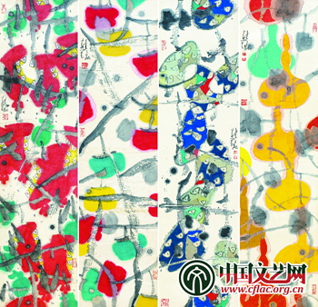 果蔬四條屏(中國畫) 132×33cm×4 張桂銘