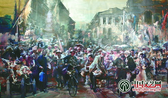 愛因斯坦在上海(油畫) 210×350cm 俞曉夫