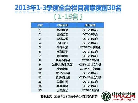 ◎央視一套《新聞聯播》在本次發布的最滿意電視節目總排名第一,“你幸福嗎”“航母style”“尋人啟事”等等,都是《新聞聯播》的看點和亮點。近年來,以《新聞聯播》為代表的央視時政新聞,實際上是在不斷傳達出一個非常強烈的信息,那就是無論是中國夢,還是和諧社會,都應有一個非常生動的電視呈現。