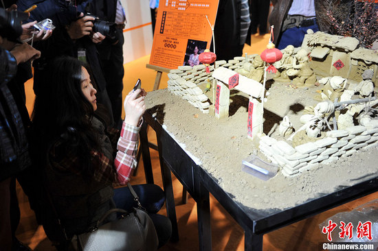 11月7日,第八屆北京文博會在北京國際展覽中心正式開幕。本屆文博會以“促進文化貿易 加快經濟升級”為主題,安排了六大系列100余場活動,設置16個主題展區,1800多家來自國內外的文化創意企業參展。圖為泥塑人物。中新網記者 金碩 攝