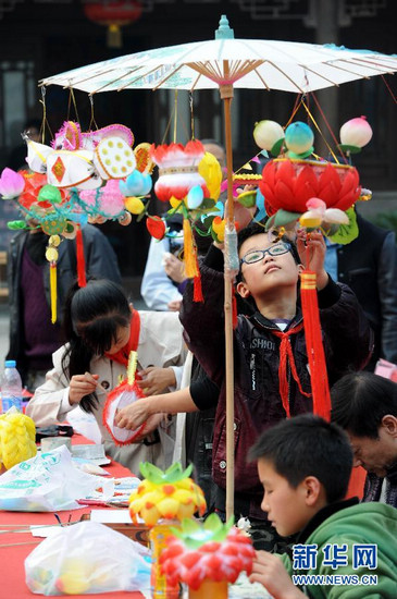 11月8日,參賽的小學(xué)生在制作秦淮花燈。新華社記者 孫參 攝