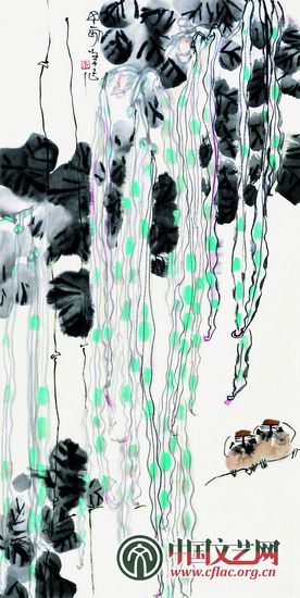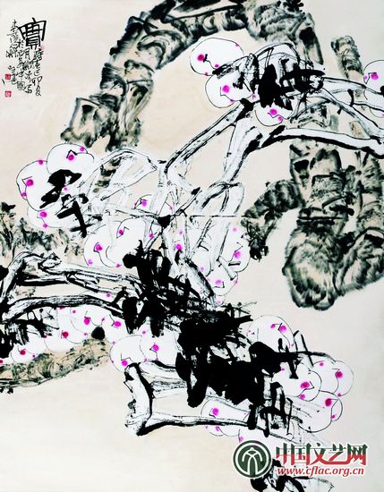 刁呈健先生的畫與我們常見的那些大寫意花鳥畫不太一樣,構圖比較新穎,還有一些現代構成的技法。而這種現代感,不是照搬西方的那種現代藝術的構圖,而是從中國的傳統的筆墨當中生發出來的東西。我覺得他是當代中國大寫意花鳥畫的一個杰出代表。