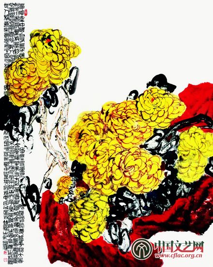 刁呈健先生是陜西畫壇一個不可多得的大寫意實力派畫家。在大寫意創作、書法以及篆刻三方面,已擺脫了現在眾多美術學院以西化為基礎的一個模式。擺脫了拘泥于細節的寫實狀態,是對傳統大寫意的一種繼承和發揚,形成了自己獨特的面貌。