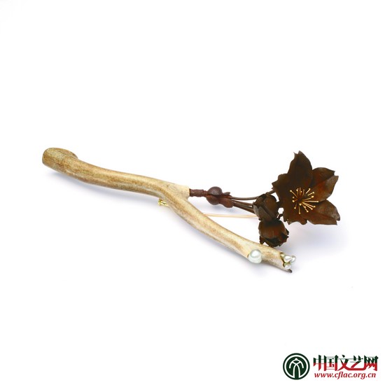 同樣是首飾,金屬藝術展上的它們不再只是一件簡單的飾物,或是身份的象征,而是承載著創作者深刻、抽象化的理念。“首飾直接接觸到人的皮膚,因此在我看來它就像是一個交換機,存在于身體的內部和外部之間,通過它可以和他人交流,傳遞出我們的感受。”任教于日本東京藝術大學的影山公章,借用跨界材料,以鐵、18K金以及聚氨酯樹脂創作了系列作品《山櫻花》。“日常生活中的一切看似微小的細節對我來說都是創作的元素,秋天散步的時候拾起的落葉和凋敝的花朵也是周圍環境給我的啟發。生命如秋葉般靜謐,首飾承載著與佩戴者共度的時光,它公平又殘忍,永不停歇地向著未來的方向奔流。于是我在創作中著意選取有生命力、有溫度的材料,以此凸顯出時間的流逝感。”