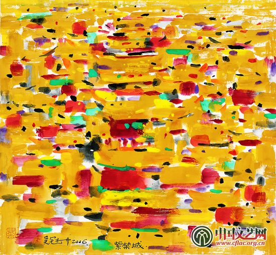 所以,抽象藝術出現的第三個問題,不是因為你要抽象,有先入為主的理念,就把抽象帶入了更高的藝術層次。而是抽象藝術發展之無觀念之抽象,固然是一個更高層次的創作層面,但弄不好,卻往往又會什么都不是。當具象轉入抽象,是現代藝術的需要,也是藝術發展的進步。當觀念的抽象又被無觀念的抽象消解,我以為畫家就會進入這么一種狀態:在他的自由王國里,可以肆無忌憚地自由揮灑,毫無觀念的羈絆,無預設的畫筆與色彩,在心與性的行走下出現,隨后,他的作品進入自我造境,也即謂純粹的抽象。然而,問題的另一面,就是當你的創作處于潛意識狀態時,不知畫什么亦可能就導致了心境與畫境始終處于一種混雜的狀態,就像人類史前的混沌狀態,就藝術本體而論,此藝術性就差矣。退一步而論,即使你是自由的通達,已完全滲入了一種心境的自由行為,如前例所言“重返佛教意識”,然你要抵達佛境,卻依然要從出而入,為何,譬若禪宗,悟中是定,我山與彼山,合而融一,然山本身未消失,是有觀照物的。密宗雖為口傳密誦,尚有觀音崇拜,更有千手觀音等,即使是藏傳佛教,也有五體投地之修行。此入,當形而見之,筆彩之修,是不虛無。大乘之道,小乘之金剛,亦有形(道)有感(硬)。故入佛教之意識,亦并非絕對之無,而若因誤讀而導致出畫面的虛無,那可能只會是一個淺薄的笑話,而非抽象之高雅或菁華。
