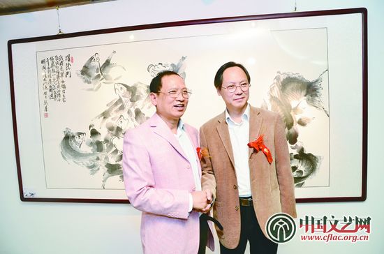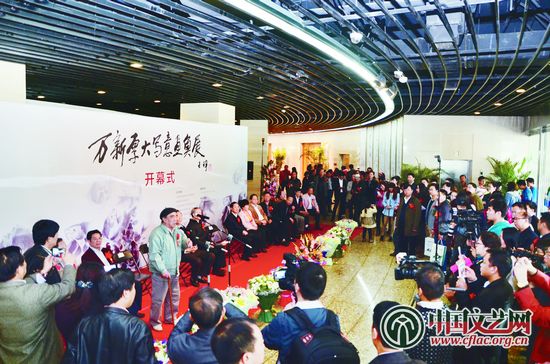 由中國(guó)美協(xié)藝術(shù)委員會(huì)、湖南省美協(xié)等7家單位聯(lián)合主辦的萬(wàn)新厚大寫(xiě)意畫(huà)魚(yú)展于10月20日至24日在北京中華世紀(jì)壇世界藝術(shù)館隆重舉行。中國(guó)文聯(lián)黨組成員、副主席夏潮,原中央黨校副校長(zhǎng)劉海藩,原中央軍委紀(jì)委副書(shū)記段達(dá)球,原空軍指揮學(xué)院副政委鄒志美,中國(guó)作協(xié)副主席、原湖南省文聯(lián)主席譚談,中國(guó)文聯(lián)國(guó)內(nèi)聯(lián)絡(luò)部主任羅成琰,清華大學(xué)美術(shù)學(xué)院院長(zhǎng)、博士生導(dǎo)師魯曉波,原中央美院藝術(shù)系主任、徐悲鴻大弟子戴澤,北京市政協(xié)副秘書(shū)長(zhǎng)陳煦,天津市南開(kāi)美術(shù)創(chuàng)作院院長(zhǎng)董振濤,中國(guó)書(shū)畫(huà)研究會(huì)主席盛懷杰,世界華人聯(lián)合會(huì)副主席劉光勇,湖南省婁底市委常委、宣傳部部長(zhǎng)伍美華等來(lái)自全國(guó)各地的嘉賓、畫(huà)家、美術(shù)評(píng)論家300余人出席了開(kāi)幕式。展覽開(kāi)幕式由《美術(shù)》雜志社副社長(zhǎng)張文華主持。