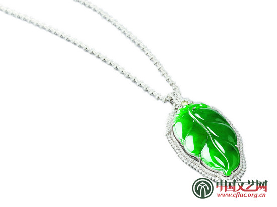 翡翠綠葉18K金鑲鉆吊墜項鏈