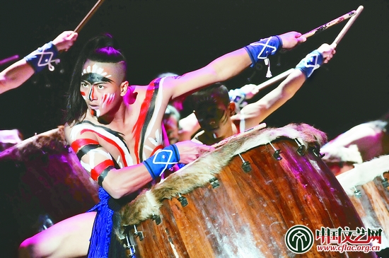 12月4日晚,在云南臨滄市舉行的云南省第八屆民族民間歌舞樂展演活動中,一批少數民族原生態歌舞樂節目亮相舞臺。圖為來自云南民族村的佤族小伙子展示傳統舞技《天地人鼓》。