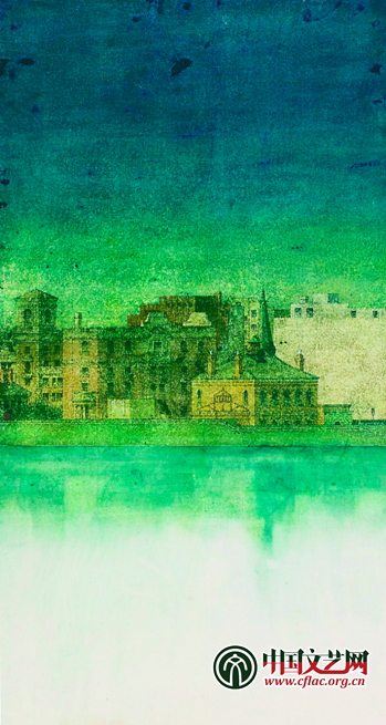 正在上海朱屺瞻藝術館舉行的“墨色傾城:2013上海師范大學都市水墨邀請展”上,展示了洪健作品《春水向東 蘇河NO.2》(紙本設色)