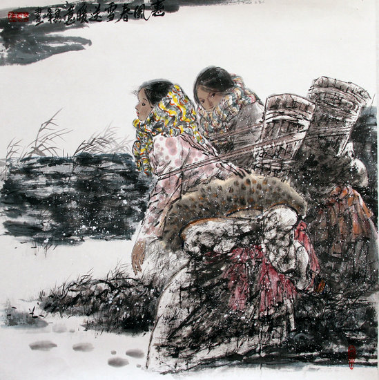 作為當代著名畫家,李秀峰創作從敦煌藝術及西部豐厚的歷史文化中汲取營養,從自己諳熟、熱愛的西部生活落筆,筆墨酣暢,情韻飽滿。她的人物畫漾溢著飽滿的激情,煥發著新生活的活力,體現著一種充實之美。她的作品始終未脫離現實生活,而且,她總是在現實生活中擷取日常生活的平凡詩意;當這一切都轉換為形式、筆墨、語言與美感時,便折射出畫家的情懷——熱愛生活、謳歌生命。