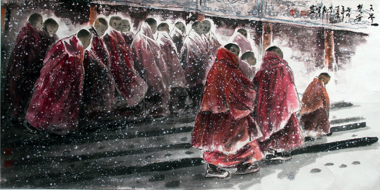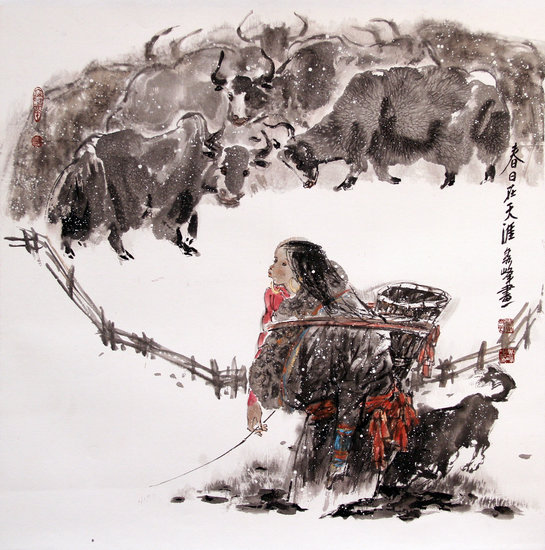 李秀峰對本次展覽進行了精心準備,每幅都是精品,在琉璃廠產生了強烈反響,觀眾們紛紛涌進美術館一睹她的作品風采。大家紛紛表示,李秀峰作為全國知名畫家,長期生活在西部,為了寫生,跑遍了西部各地。她的作品拓展了傳統筆墨的表現技法,蘊含著高原粗獷、奔放的激情,并充溢著對美好生活的贊美之情。特別是以藏區生活為題材的作品,反映原始生態下活潑的生命及生活瞬間,處處透露出女性視野觀照下的細膩與溫宛,時時流露出作為母親的愛與柔情。可以說,李秀峰已達到了唐代韓愈所言“若駟馬駕輕車,就熟路”的自由境界。