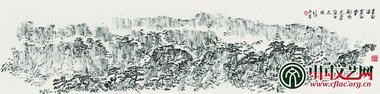 焦墨作為中國傳統(tǒng)墨法“焦、濃、重、淡、輕”之首,主要作用是突出與強(qiáng)調(diào),如果單獨(dú)運(yùn)用,沒有水的變化,難度很大,不容易畫出意境,“計(jì)白當(dāng)黑”、“知白守黑”,對畫家的創(chuàng)造力是一個巨大的考驗(yàn)。焦墨山水的發(fā)展其實(shí)很大程度上得益于寫生,因?yàn)閷懮锌赡芡黄颇承╆愐?guī),帶來生活的氣息,也有利于體現(xiàn)自身的表現(xiàn)個性,投射出時代的風(fēng)格印記。邵璞的畫里也有寫生的成分,但是并沒有削弱他主觀的部分,反而比較“意象”,比較有詩意,畫面簡淡恬靜,筆力剛?cè)嵯酀?jì),語言凝練,看似輕描淡寫,寥寥數(shù)筆就勾勒出山川萬象。他淡化了寫實(shí)成分,啟用他個人對于山水精神的理解所提煉出的獨(dú)有的符號元素,既來源于生活,又高于生活,畫面輕靈抒情,意到筆隨。他對于詩歌的修養(yǎng)造詣和詩性的情懷使他輕松地避開了焦墨畫法易過于結(jié)實(shí)濃烈而不舒展的先天缺陷,非常可貴。