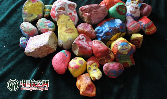 這是志愿者用山上的石頭創作的各種表情畫,他們把這些擺成了心形。 中國文藝網 丁薇 攝
