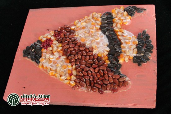 文藝支教的志愿者們客服了當地艱苦創作條件,就地取材指導學校的孩子們創作,這是用各種顏色的種子完成的作品,充滿生活氣息。 中國文藝網 丁薇 攝