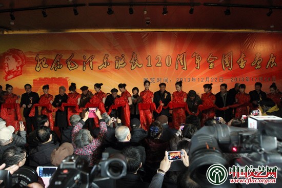 12月22日,紀(jì)念毛澤東誕辰120周年全國書畫展在中華世紀(jì)壇世界藝術(shù)館開幕。中國文聯(lián)副主席楊承志,中國美術(shù)家協(xié)會秘書長徐里等出席展覽開幕式。